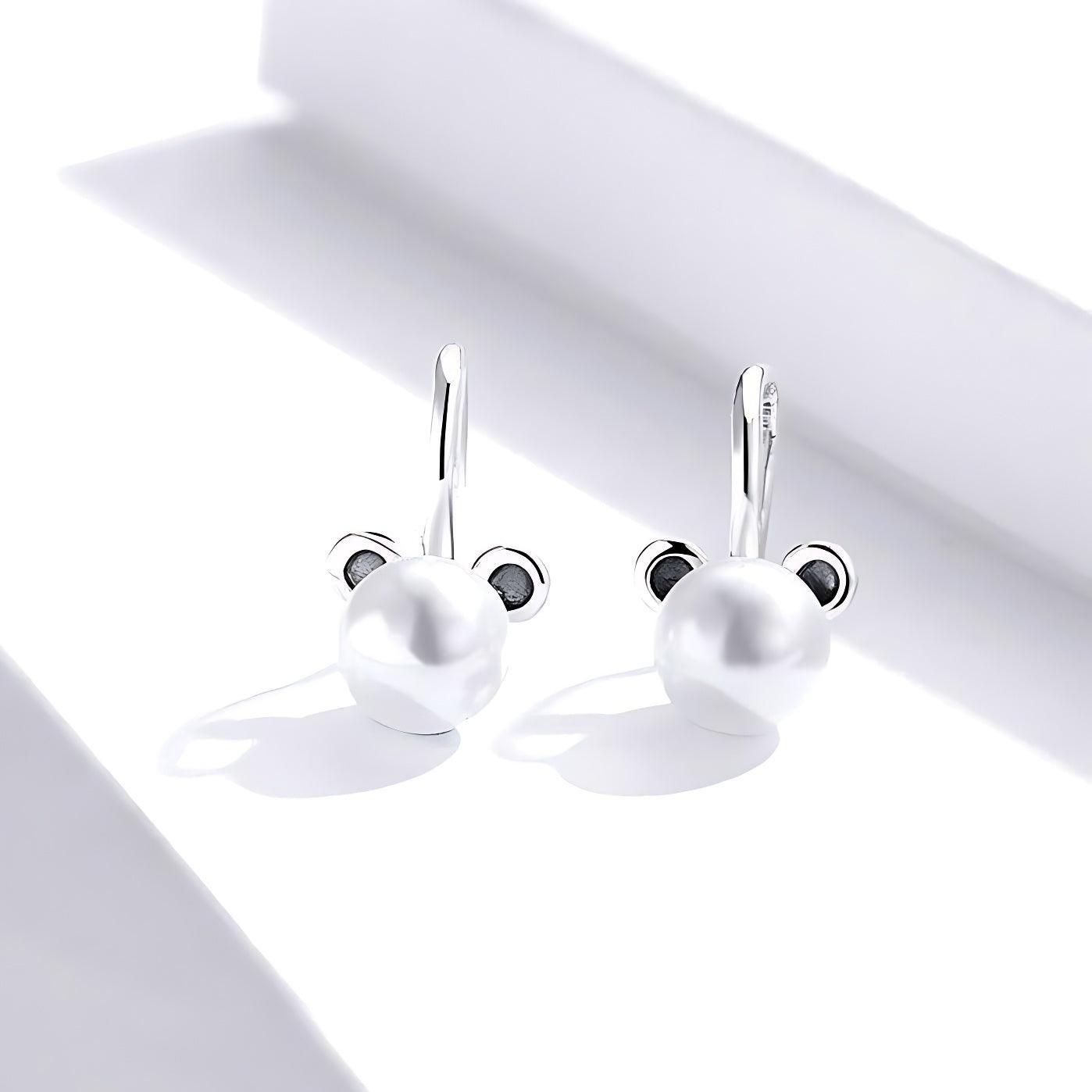 Cute Bear Dangle Earrings Authentic 925 Sterling Silver White Pearl Drop Earrings For Women Lovely Jewelry ECE918. 100% 925 Sterling Silver Cute Bear Dangle Earrings Charm Jewelry.