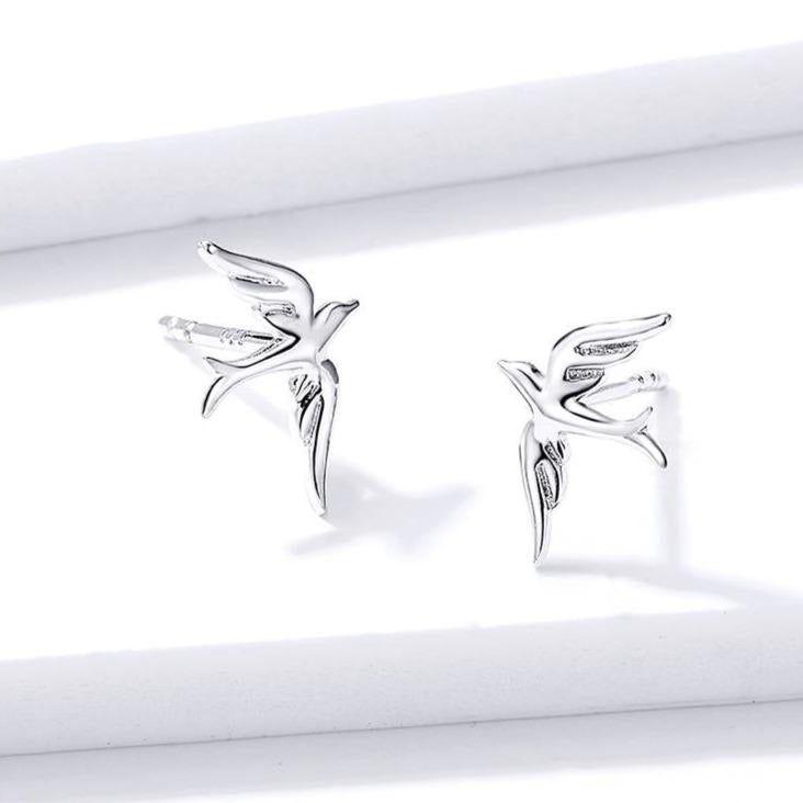Spring Swallow Stud Earrings for Women. 925 Sterling Silver Jewelry. Vivid Flying Bird Earing for Girl. 2024 Design BSE302.