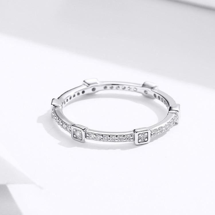 Square Geometric Stackable Finger Rings for Women. Clear CZ 925 Sterling Silver Engagement Statement Charm Jewelry SCR551.