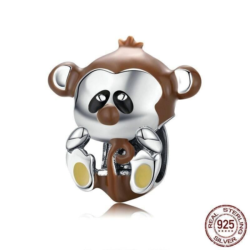 Lovely Monkey Animal Charm for Original Silver Snake Bracelet 925 Sterling Silver Beads Luxury European Jewelry BSC125....