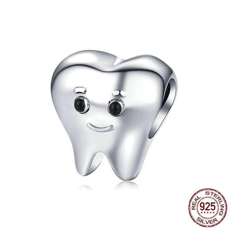 Genuine 925 Sterling Silver Lovely Tooth Metal Charm for Silver Snake Bracelet Bijoux Cute Baby Dentist SCC1401....