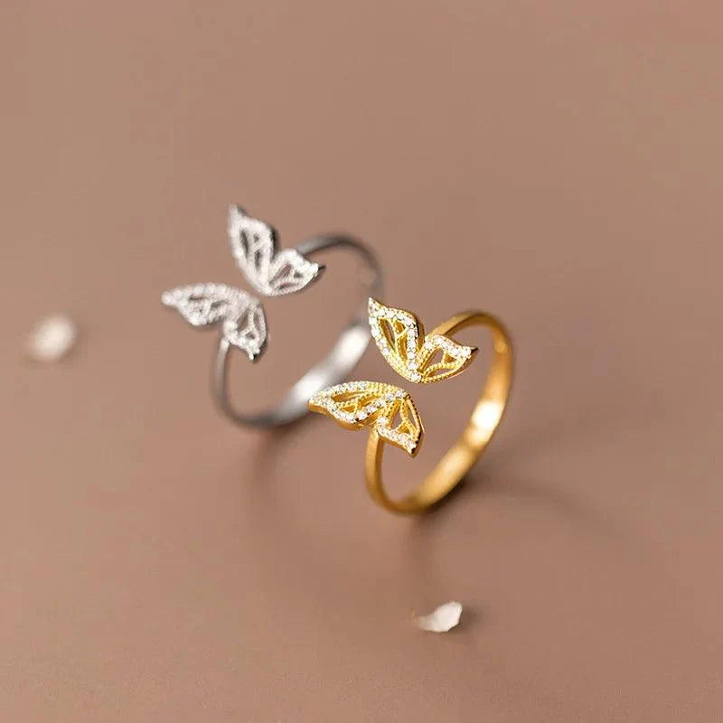 Elegant and Sweet Inlaid Zircon Golden Color. Butterfly Finger Rings Charm Jewelry For Women: Korean Fashion Jewelry....