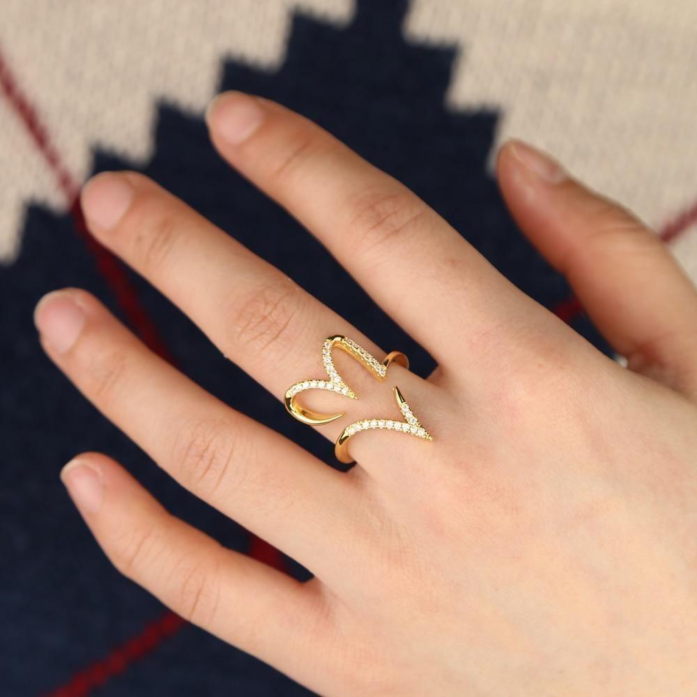 Gold color CZ open heart ring for women valentines lover girlfriend gift charm jewelry.