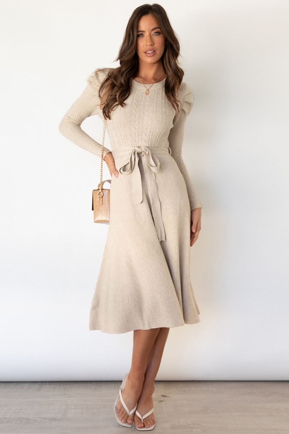 Bubble Long-Sleeved Mid-Length Knitted Dress