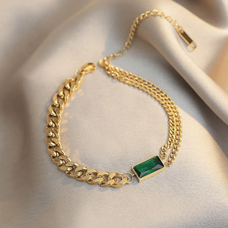 New Classic Geometric Rectangle Green Crystal Stainless Steel Chain Tassel Earrings Bracelets Necklaces Charm Jewelry Unusual Accessories...