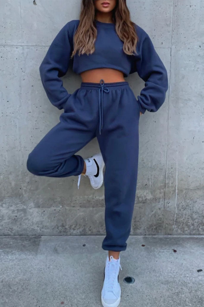 Crew Neck Sweatshirt & Drawstring Waist Jogger Two-piece Set