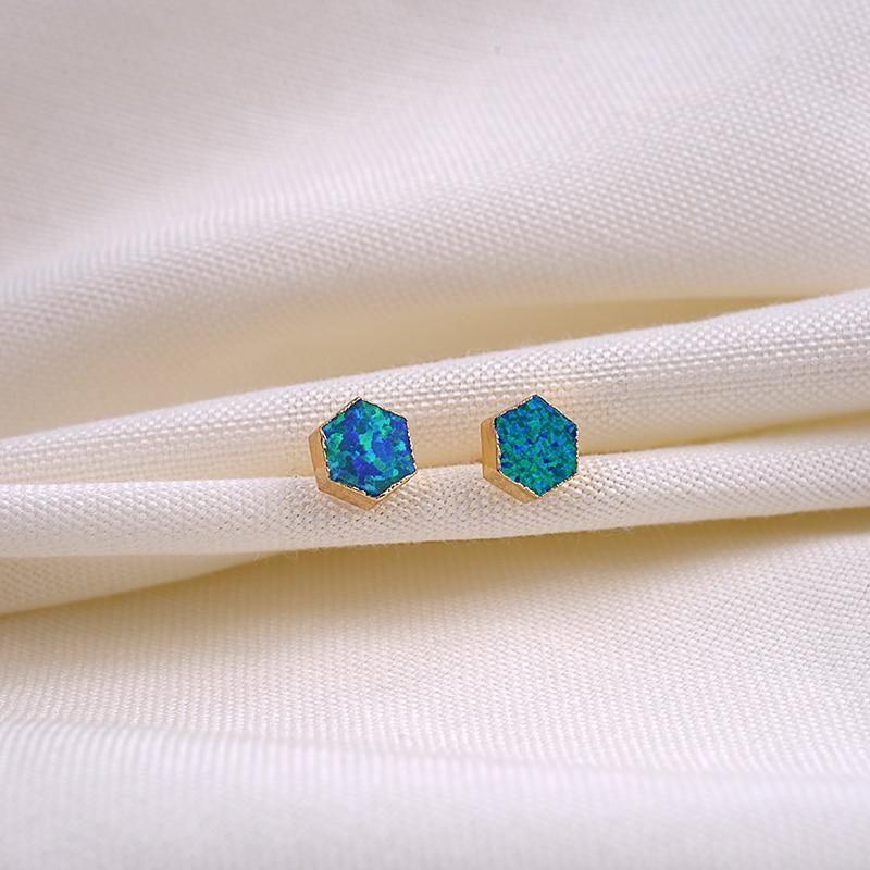 Hexagon Stud Earrings Fashion Gold-color Black Blue Fire Opal Stone Earrings Charm Jewelry For Women Exquisite Jewelry...