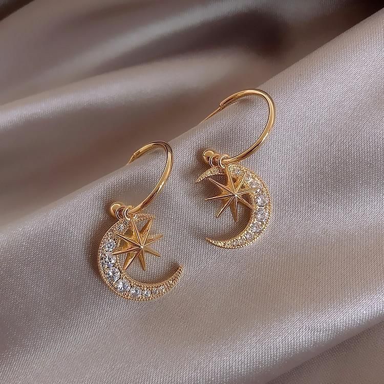 European And American Elegant New Star Moon Earrings. Female Moon Star Creative Simple Imitation Rhinestone Earrings Charm Jewelry.
