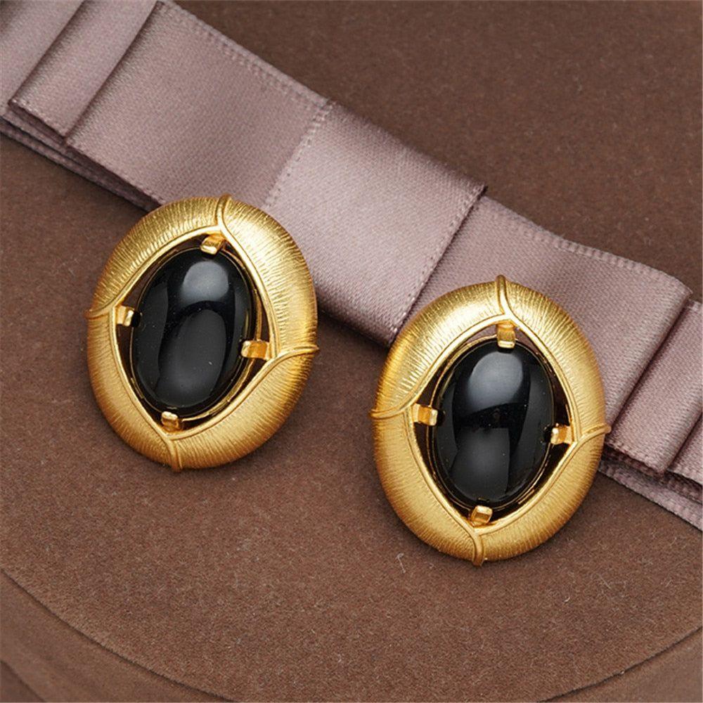 These black stone earrings for women feature a French retro design with a vintage style and a touch of light luxury. The oval shape of the earrings is irregular. adding a unique element to the design. Made of copper. these earrings are fashion-forward and stylish. They are a perfect gift for girls who appreciate the finer things in life. These stud earrings have push-back findings. making them comfortable to wear. Whether you're dressing up for a special occasion or adding some flair to your everyday look. these earrings are a great choice.