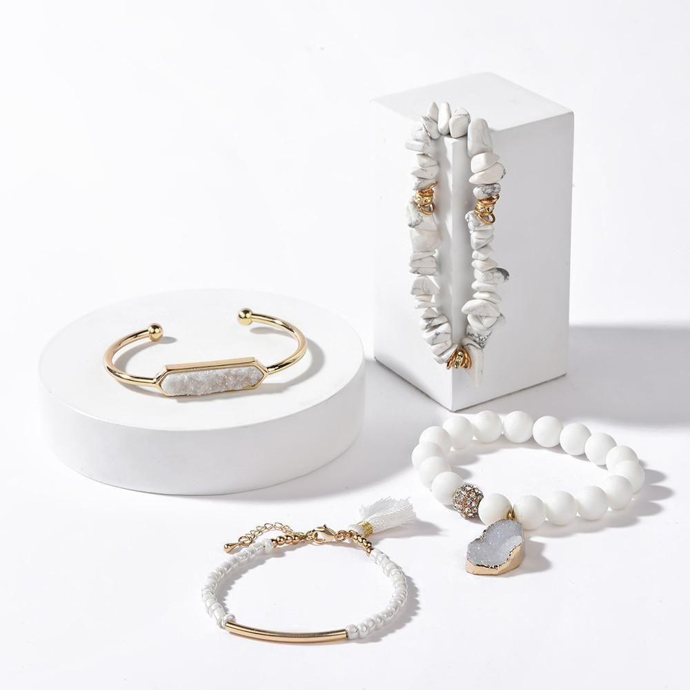 Natural Stone Beads Bracelets Charm Jewelry Set For Women 2020 Howlite Crystal Quartz Druzy Charm Bracelet Open...