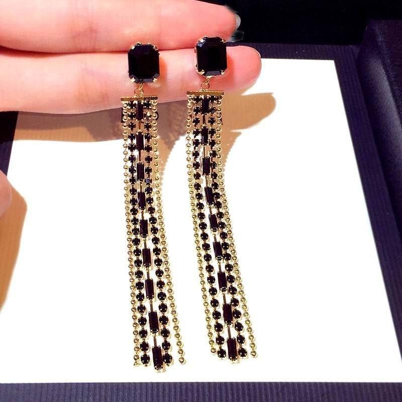 Delicate Black Tassel Long Earrings For Women. New Charm Jewelry Delicate Drop Earrings Gifts. Metals Type: Copper...