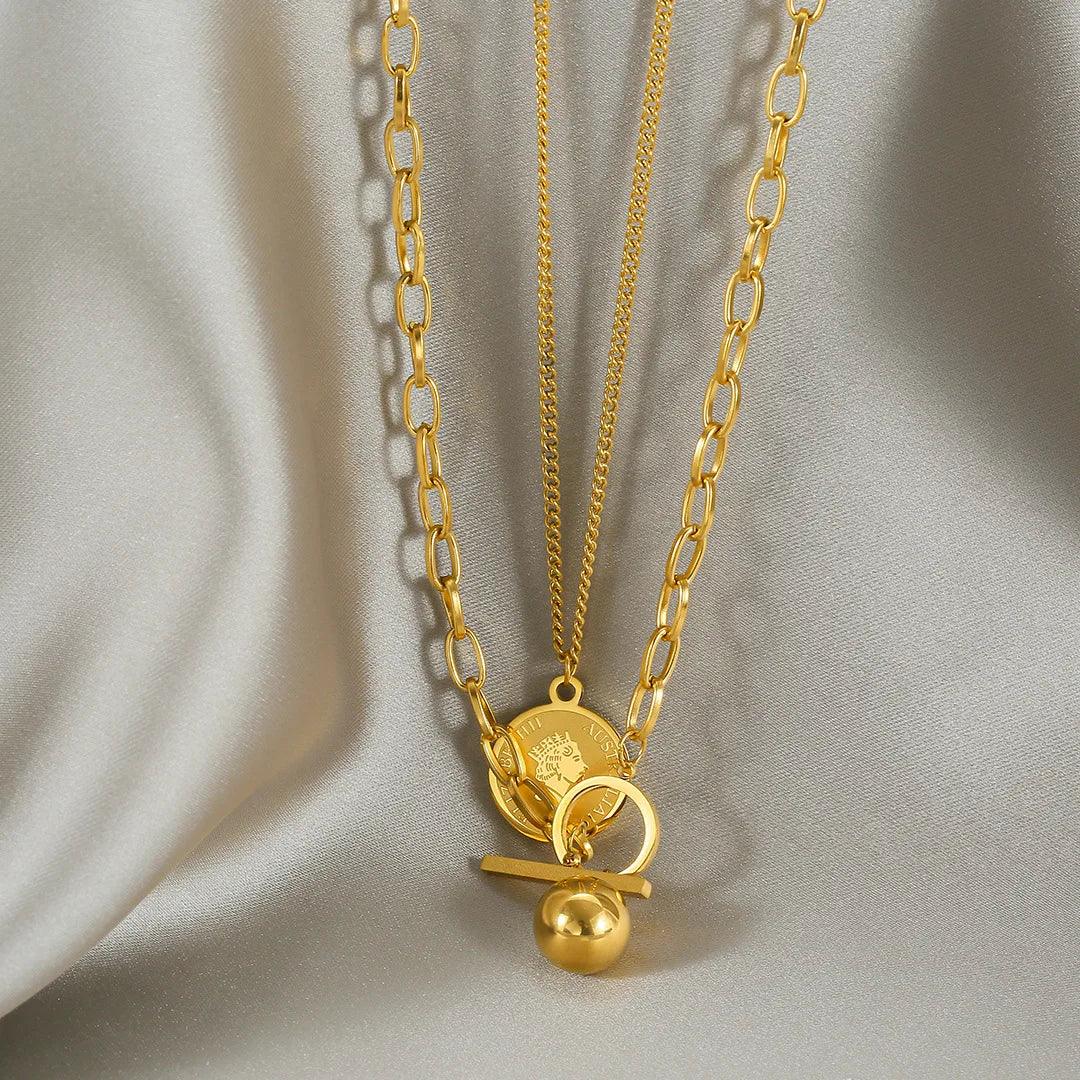 Statement Double Layers Coin Cross Long Necklace For Women. 2024 New Charm Jewelry. Personality Pendants Choker Collares.