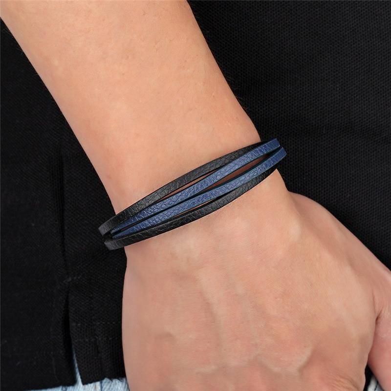 New 4 Layers Color Mixing Fashion Multilayer Leather Bracelet Men Jewelry Punk Stainless Steel Bangle Magnetic Buckle...