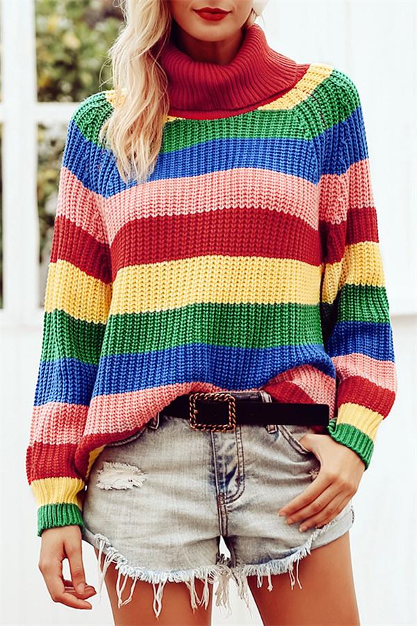 Cotton candy anyone? Sweeten up your wardrobe easily with this rainbow knit sweater. Pair with jeans for an easy. casual look or dress it up with cropped slacks and mule slides to bring the color and fun to your professional attire.