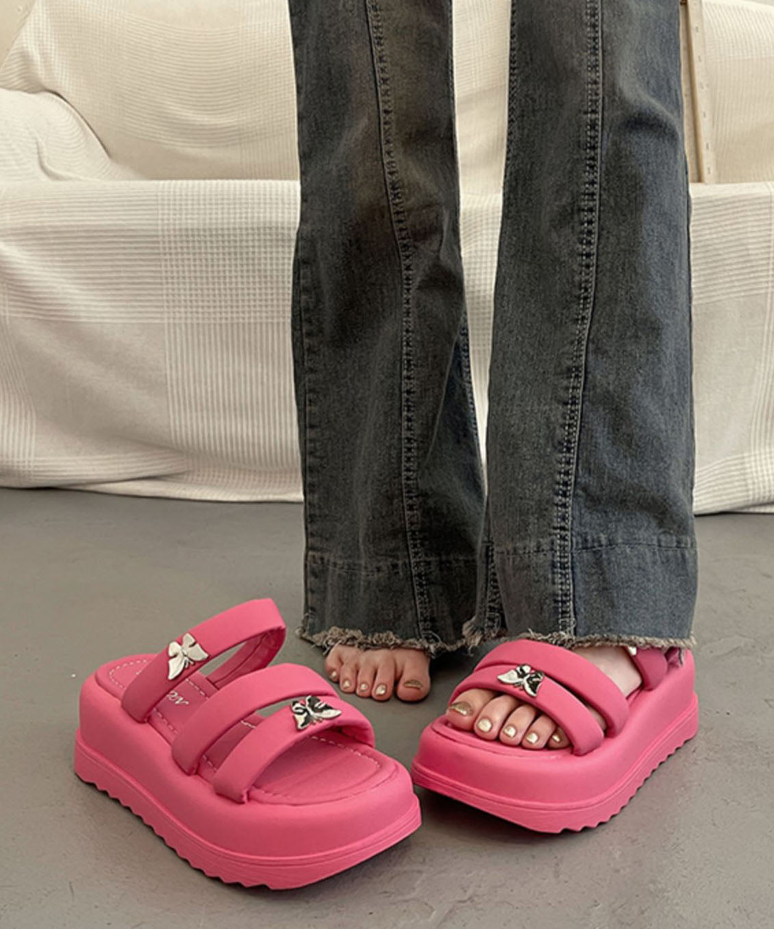 Stylish Rose Butterfly Decorated Splicing Platform Slide SandalsMade of:-PU Upper.-Rubber sole- cushioned insole.2.36"/6cm Platform Heel