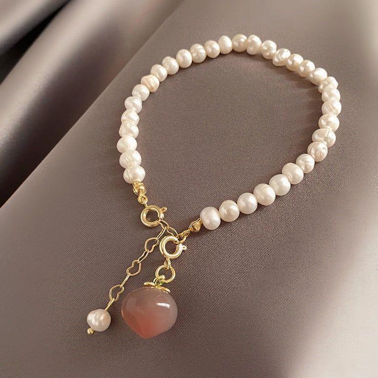 New Baroque Natural Pearl Pink Peach Pendant Bracelets Charm Jewelry For Woman. Korean Fashion Jewelry For Girls. Elegant and Sweet Charm Bracelet.